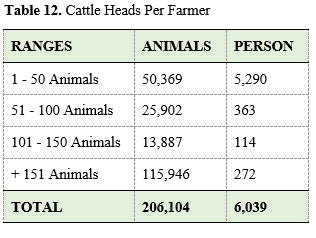 With regards to number of cattle heads per farmer, it